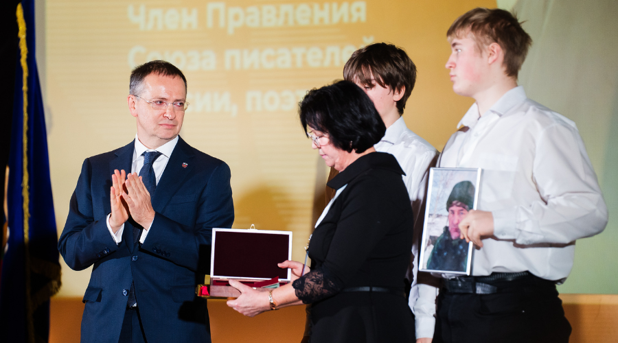 Во время заседания 1-й секретарь Союза писателей России Владимир Мединский вручил Орден мужества матери поэта, члена правления СПР Алексея Полуботы, погибшего при исполнении воинского долга. Делегаты Съезда почтили память героя минутой молчания.